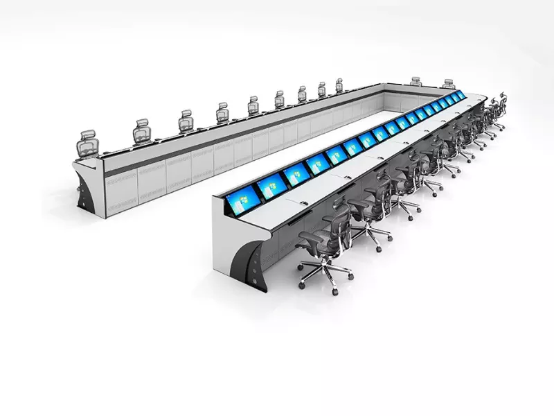 Une console de surveillance multi-sièges est un système de poste de travail intégré qui peut accueillir deux opérateurs ou plus travaillant simultanément. Il fournit une plate-forme centralisée pour monter des moniteurs, héberger des équipements de contrôle, gérer des câbles et maintenir un confort ergonomique pendant les quarts de travail prolongés.